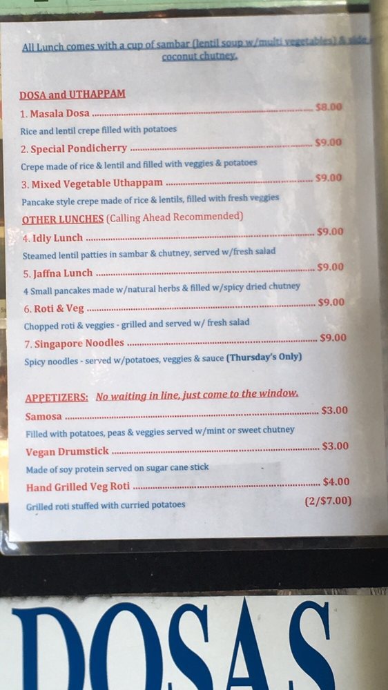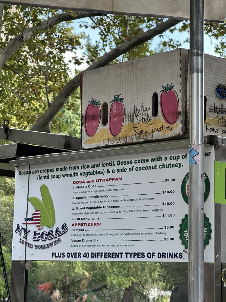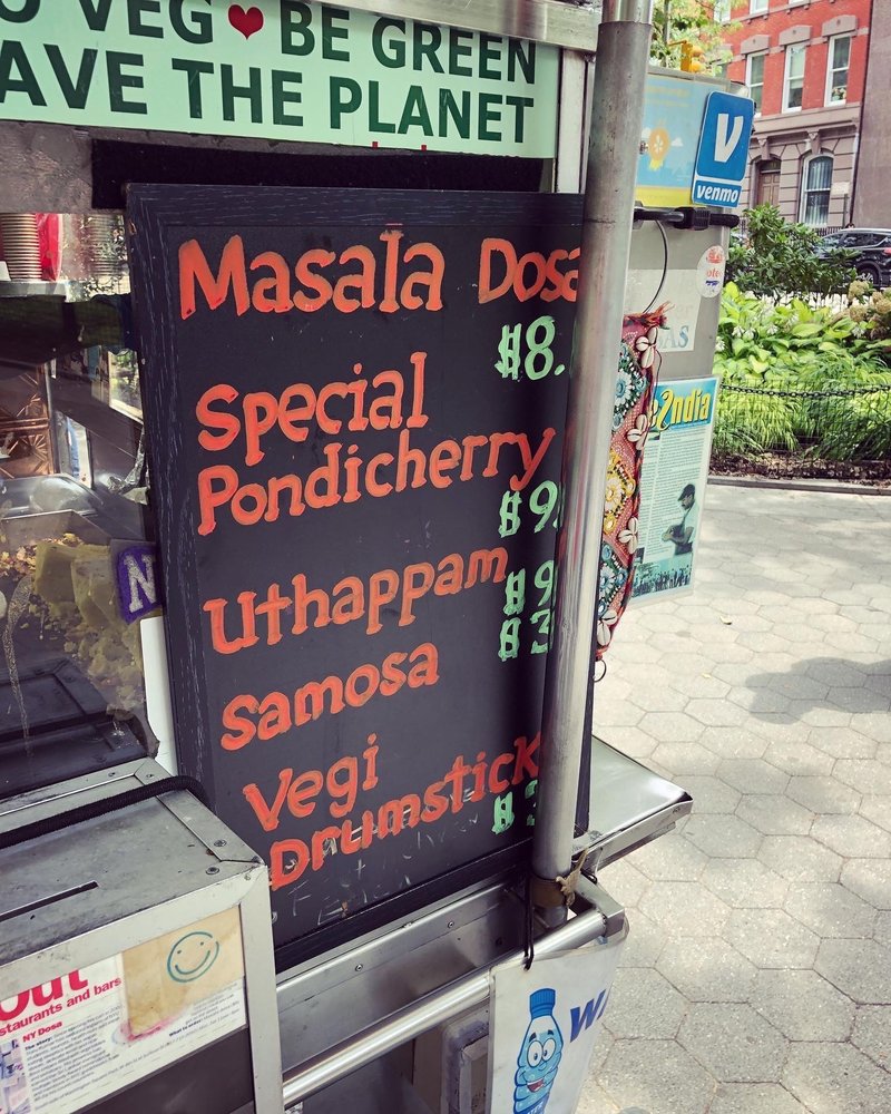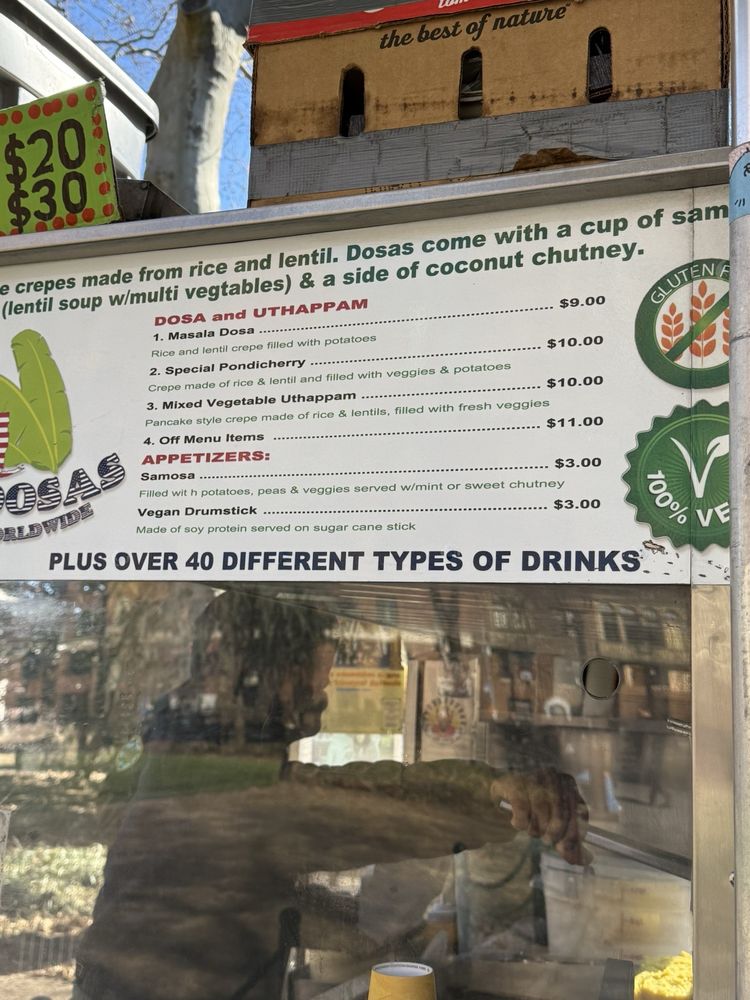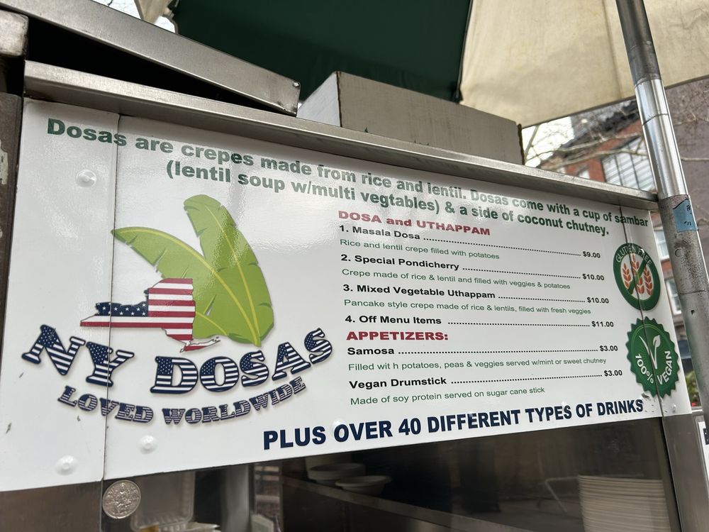 Welcome to NY Dosas, a beloved food cart nestled in the heart of Washington Square Park, New York. Renowned for serving some of the best vegetarian Indian cuisine, this vibrant stand is a must-visit for anyone craving authentic dosas. The menu features delightful appetizers like vegan drumsticks and samosas, all perfect for kicking off your culinary adventure.